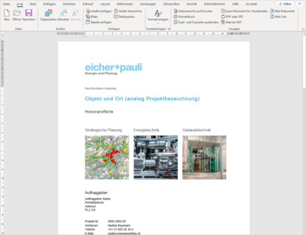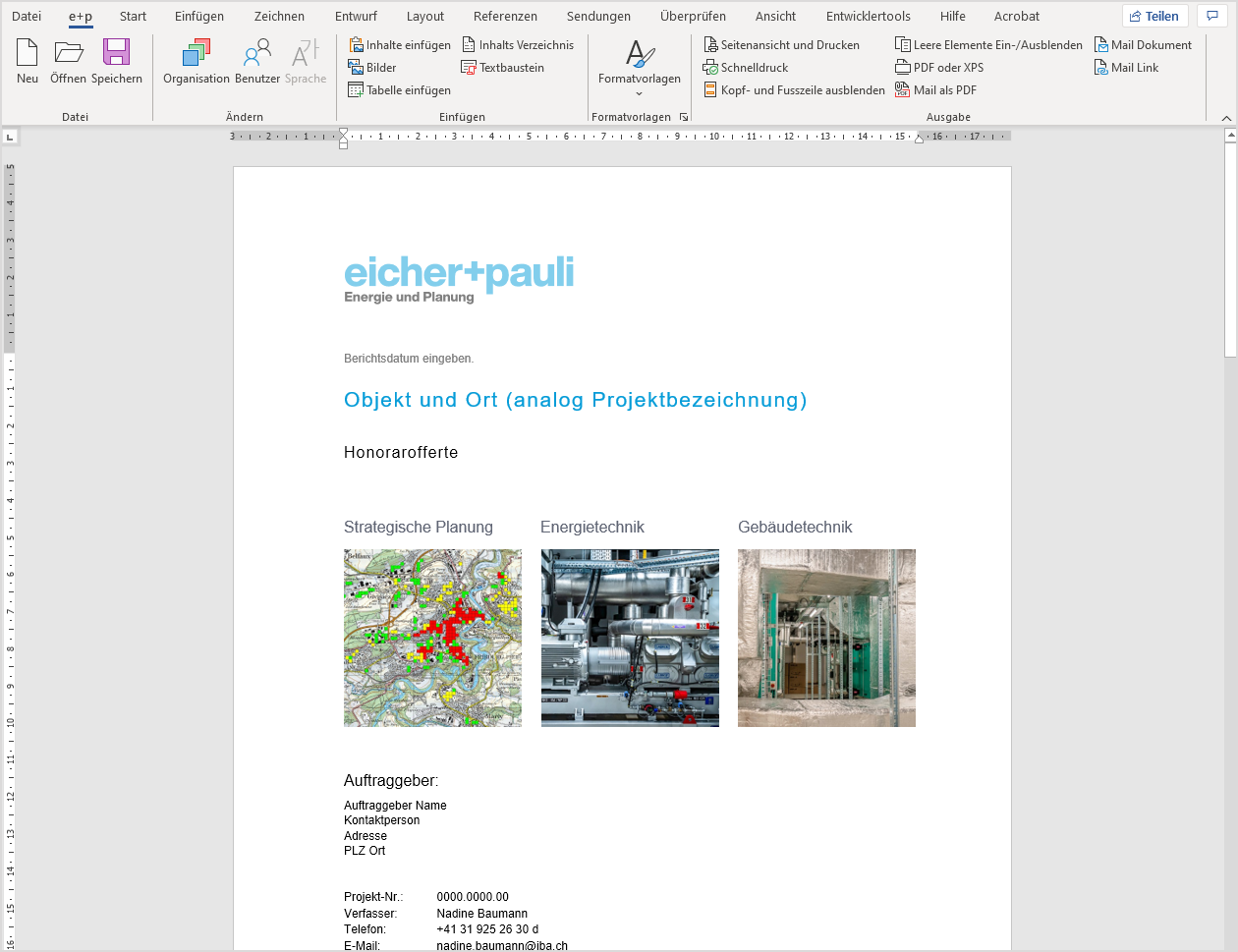Ganze sieben Jahre war die von uns entwickelte Word-Vorlagenlösung der 1. Generation bei eicher+pauli im Einsatz. Durch die enorme Effizienzsteigerung in der täglichen Anwendung dieser Templates und Hilfsmittel (auch für OneNote, PowerPoint und Excel), wurde die damalige Investition x-fach zurückbezahlt.