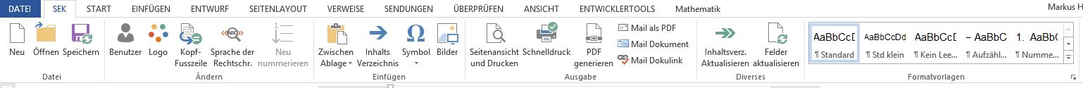 - Integration der ActiveDirectory Benutzer. Der Benutzer kann via Befehl im Menüband ausgewählt werden. Dadurch werden in einem Dokument automatisch alle benutzerspezifischen Daten abgefüllt.