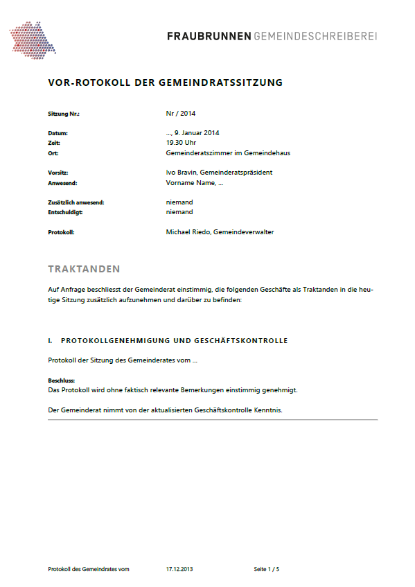 Nachdem unser Partner RAPGRAPHICS die Designarbeiten für die Word Vorlagen der Gemeinde Fraubrunnen erstellt hatte, haben wir diese technisch umgesetzt.